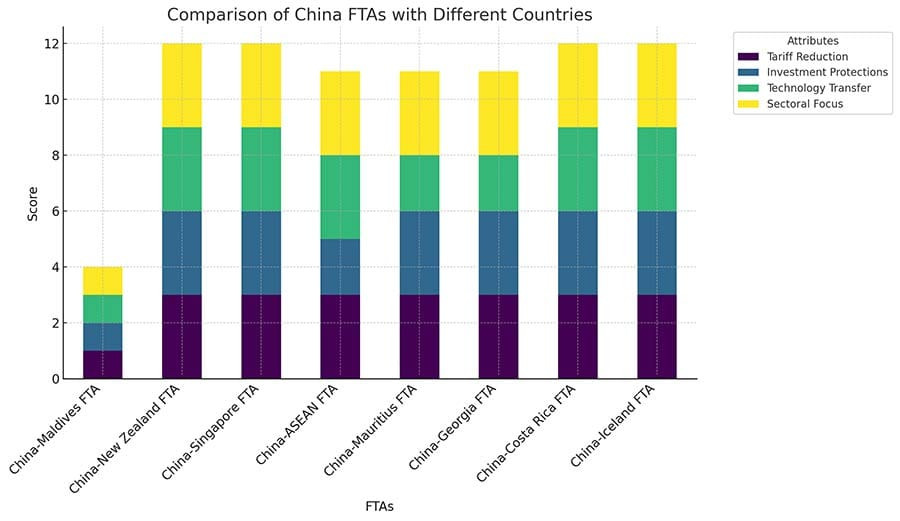Conclusion: Toward a Fairer Trade FrameworkThe China-Maldives FTA, as it stands, is not only one-sided; it is also a missed opportunity. Compared to other FTAs that China has signed, this agreement provides the least consideration for the partner country's economic development, wealth creation, and long-term growth. As the Maldives approaches the decision to enforce this agreement, it should seek a fairer trade framework that genuinely supports the aspirations of its people, particularly its youth. A renegotiated FTA that reflects these values would be a step toward a more balanced and prosperous future for the Maldives.