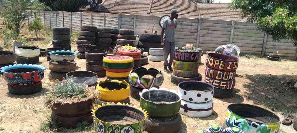 With the unemployment rate at 85%, the trio decided to think outside the box and self-employ while at the same time working towards clearing mountains of tyres that might be littering communities.