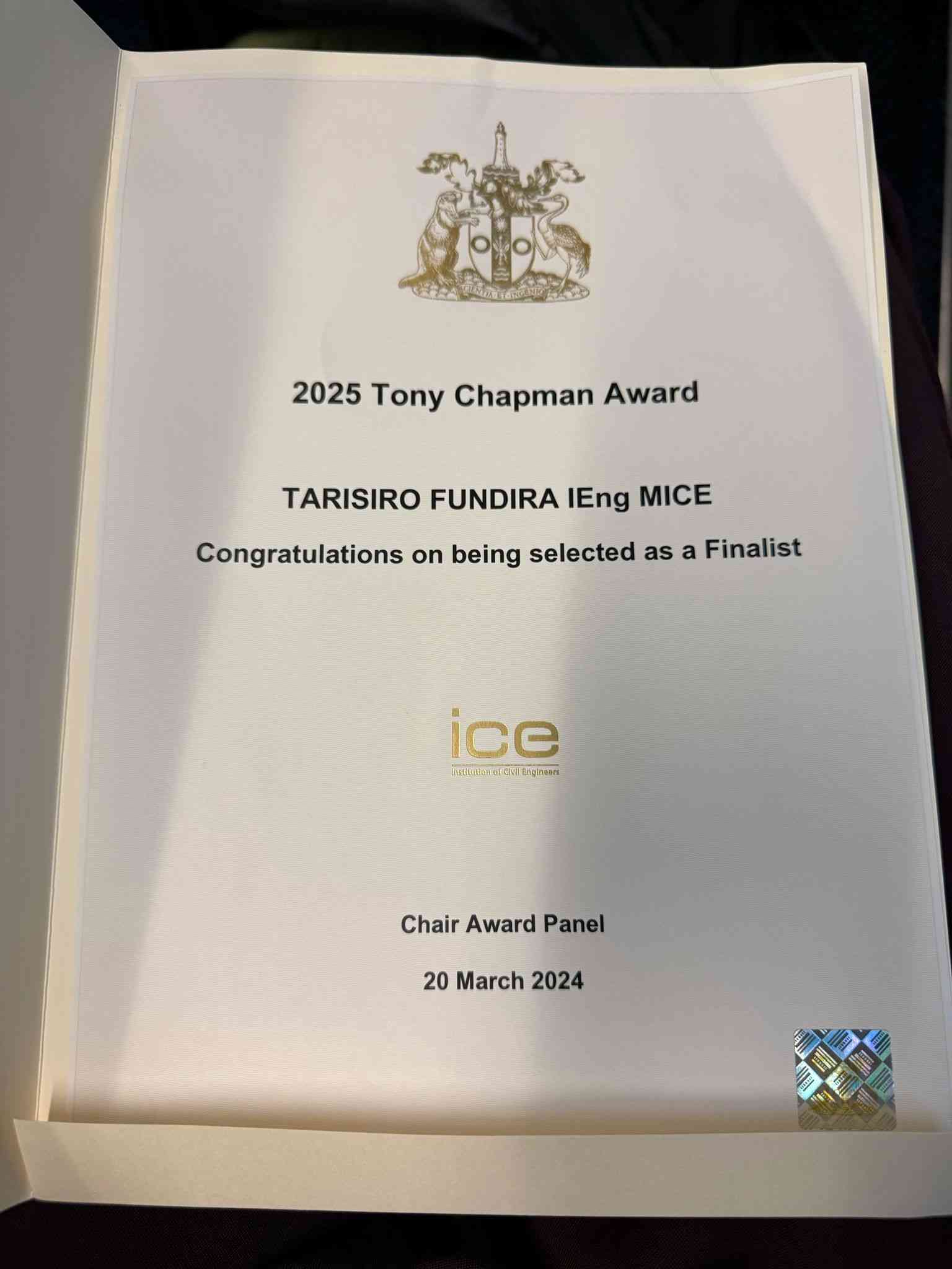 Tarisiro Fundira has made history by becoming the first Zimbabwean to win the prestigious Tony Chapman Medal award presented by the Institution of Civil Engineers (ICE) which recognizes exceptional performance among newly qualified Incorporated Engineers.