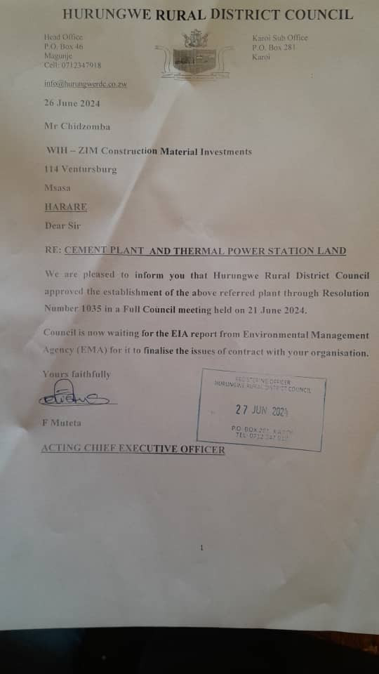 In September 2024, villagers petitioned the Zimbabwe Human Rights Commission (ZHRC), a constitutional body, over likely water contamination from the cement project.