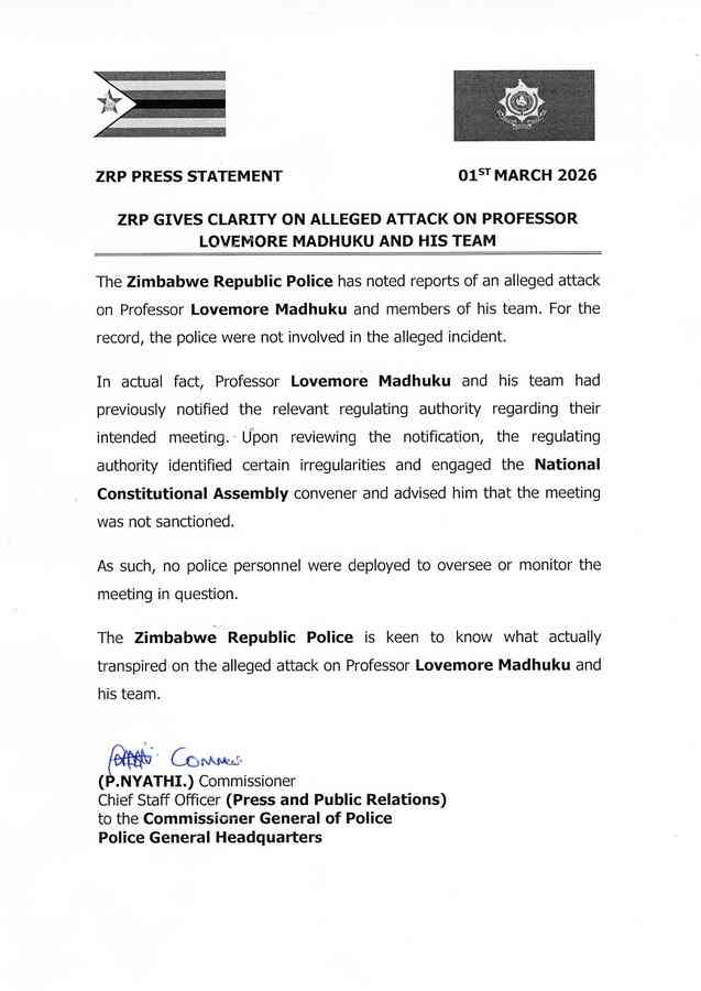 HARARE, Mar. 2 (NewsDay Live) - National Constitutional Assembly (NCA) leader Lovemore Madhuku has dismissed police claims that his party sought clearance to hold a meeting at its Harare offices, insisting the gathering was lawful and did not require prior approval.