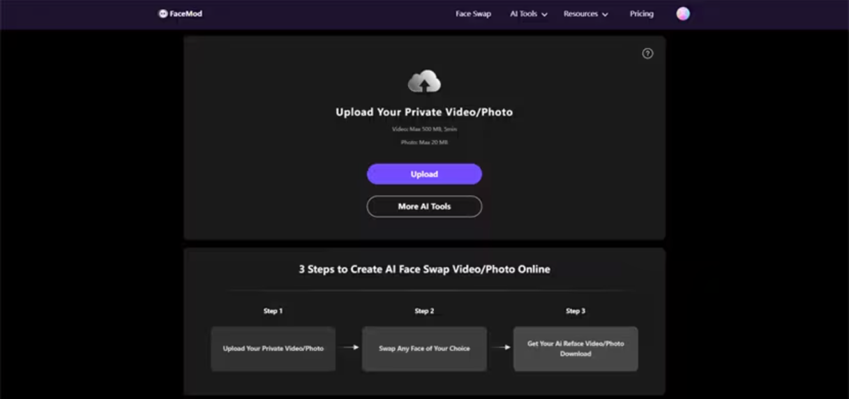 If you don’t wish to install or download any AI app, then using FaceMod for face swap video or photo is a great option. It is a reliable tool that is safe, easy, and quick to use. It causes no interruptions to your videos or photo. Here is the step-by-step guide to face swap video/face swap photo using FaceMod:
