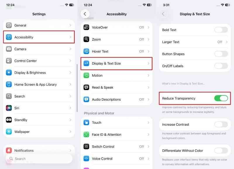 Part 3. Enable Reduce Transparency to Resolve iPhone Screen Flickering