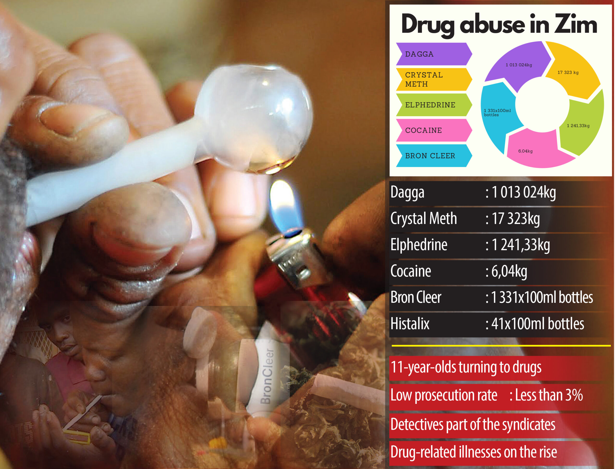 MIRIAM MANGWAYA CHILDREN, as young as 11, are taking to drugs in Harare’s ghettos and affluent suburbs, while mental institutions are recording a surge in dope consumption and, on the street narcotics battlefront, the police are losing the fight.