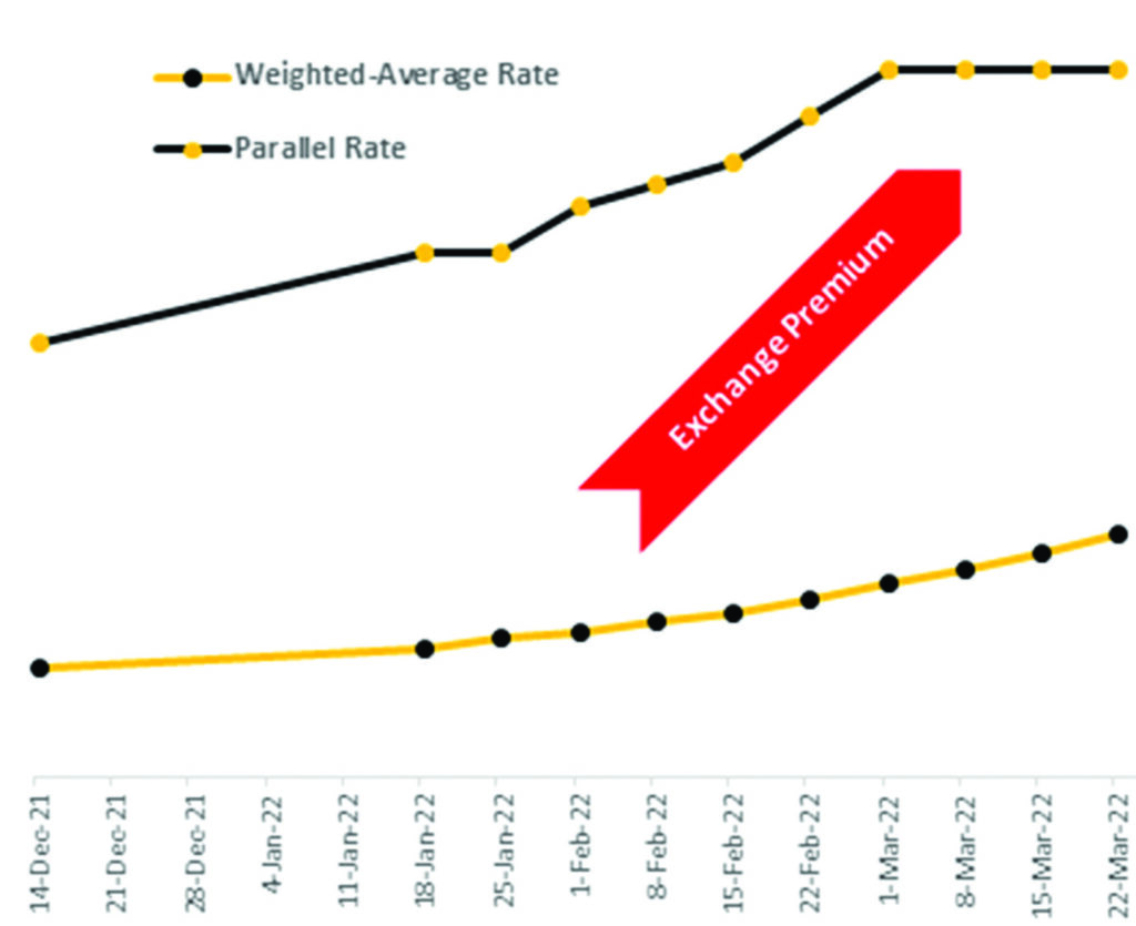 Over the annual break between December 2021 and January 2022, the parallel exchange rate shed over 30% taking the premium to levels close to 100%.