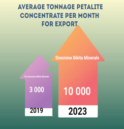 Between December 2022 and February 2023, the company produced 30 000 tonnes of petalite concentrate, which was exported mainly to China and Japan and generating US$75 million.
